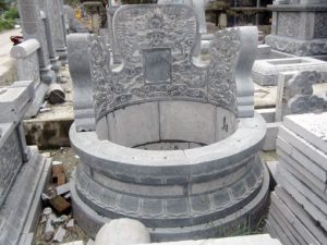Mộ tròn đá xanh DT-MDT06 chạm trổ hoa văn chữ Hán tinh tế