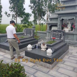 Với sự phát triển của kinh tế và cuộc sống càng ngày càng tốt hơn, việc sử dụng đá tự nhiên trong xây dựng lăng mộ tại Hà Tĩnh đang được nhiều người ưu tiên hơn việc sử dụng gạch hay xi măng truyền thống. Mặc dù mỏ đá lớn ở thị xã Hồng Lĩnh đã không còn hoạt động, nhưng nguồn cung đá vẫn rất phong phú, được nhập từ các tỉnh lân cận như Nghệ An, Thanh Hóa giúp khách hàng có thể thoải mái lựa chọn loại đá phù hợp với nhu cầu và ngân sách. Trong công trình này, thỏa theo yêu cầu của gia chủ, chúng tôi đã sử dụng chất liệu chính là đá xanh đen Ninh Bình, nổi tiếng với độ bền và thẩm mỹ cao, không nứt vỡ mà có màu vân đá đều màu.